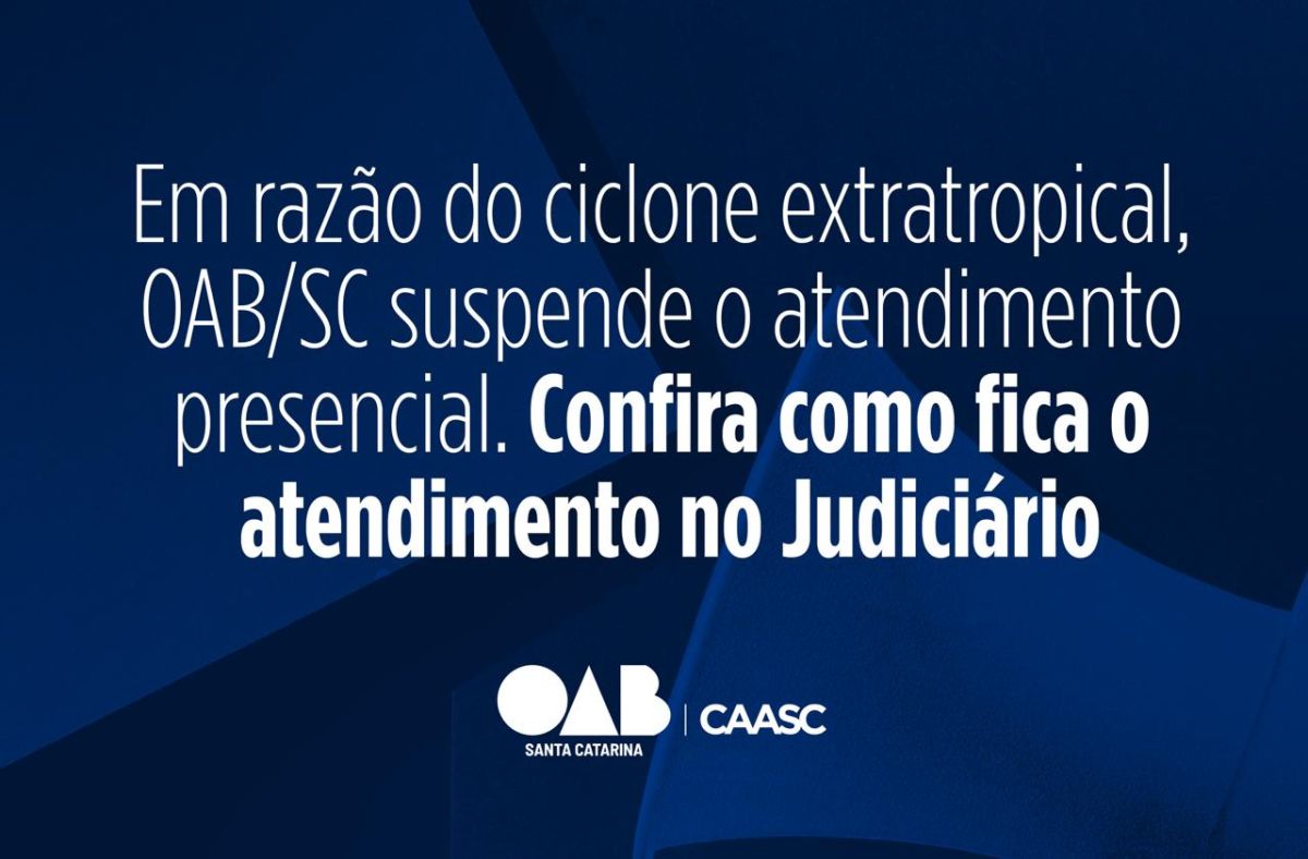 O Tribunal de Justiça de Santa Catarina determinou, que devido a formação do ciclone extratropical, a modalidade de atendimento e de trabalho - presencial ou remoto - nas 113 comarcas e na sede do TJSC ficará a cargo dos gestores das áreas administrativas e judiciais, de acordo com as particularidades de cada região.