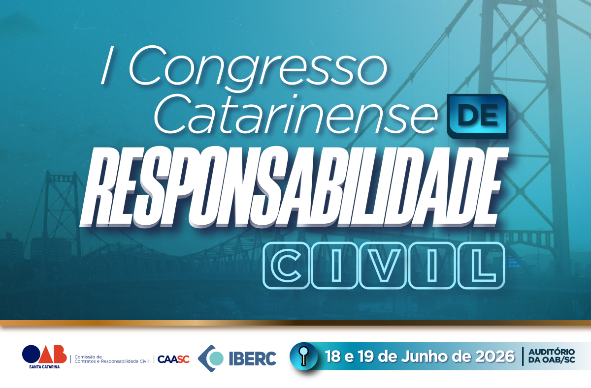 Nos dias 18 e 19 de junho, o auditório da OAB/SC sediará o I Congresso Catarinense de Responsabilidade Civil, promovido pela Comissão de Contratos e Responsabilidade Civil em parceria com o Instituto Brasileiro de Responsabilidade Civil - IBERC. O evento reunirá especialistas de diferentes regiões do país para discutir temas centrais e contemporâneos da responsabilidade civil, com abordagem técnica, crítica e voltada à prática profissional, contando com a presença do Professor Nelson Rosenvald na abertura.