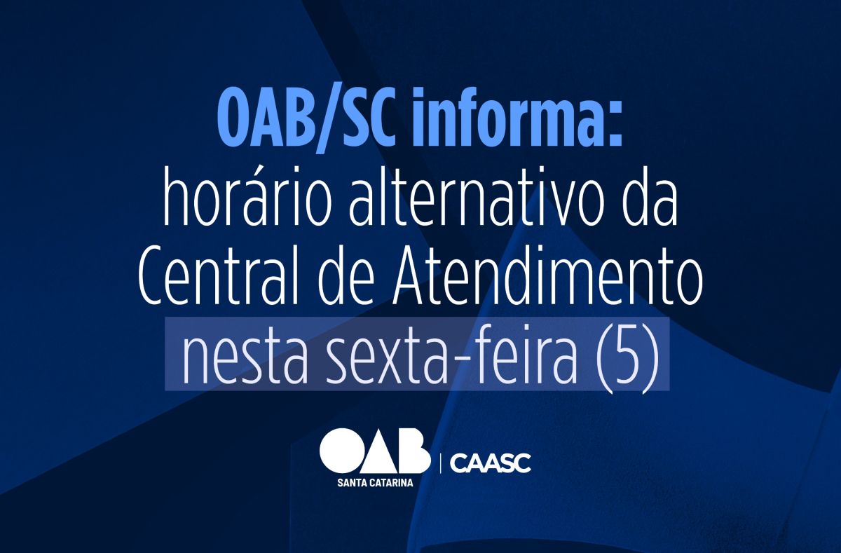 A OAB/SC comunica a todos que o expediente na Central de Atendimento nesta sexta-feira (5) será até 12h, devido a confraternização dos colaboradores a ser realizada na Seccional.