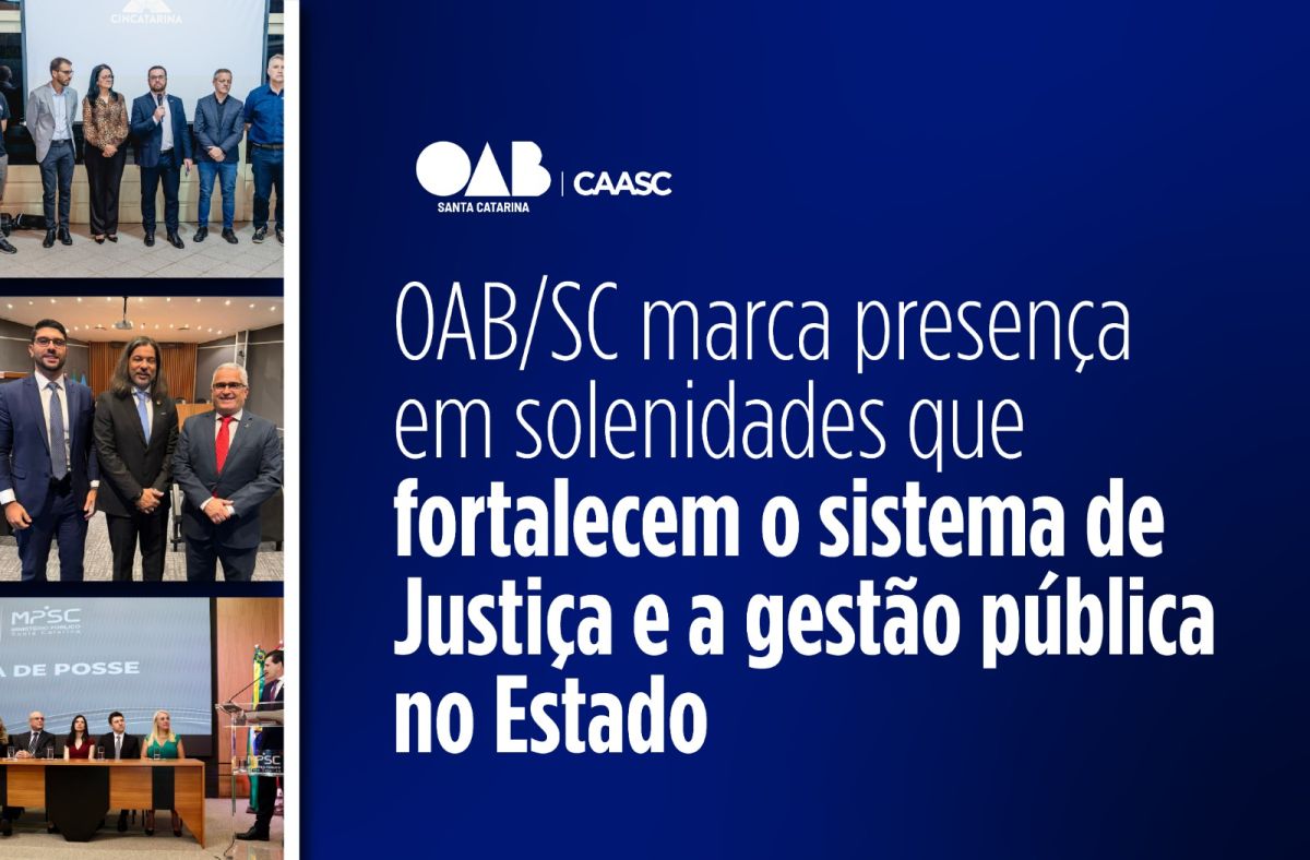 Na última semana, a OAB/SC marcou presença em importantes solenidades institucionais em Santa Catarina, reforçando seu compromisso com o fortalecimento das instituições públicas, a integração entre os poderes e a valorização das carreiras essenciais à Justiça e à gestão pública.