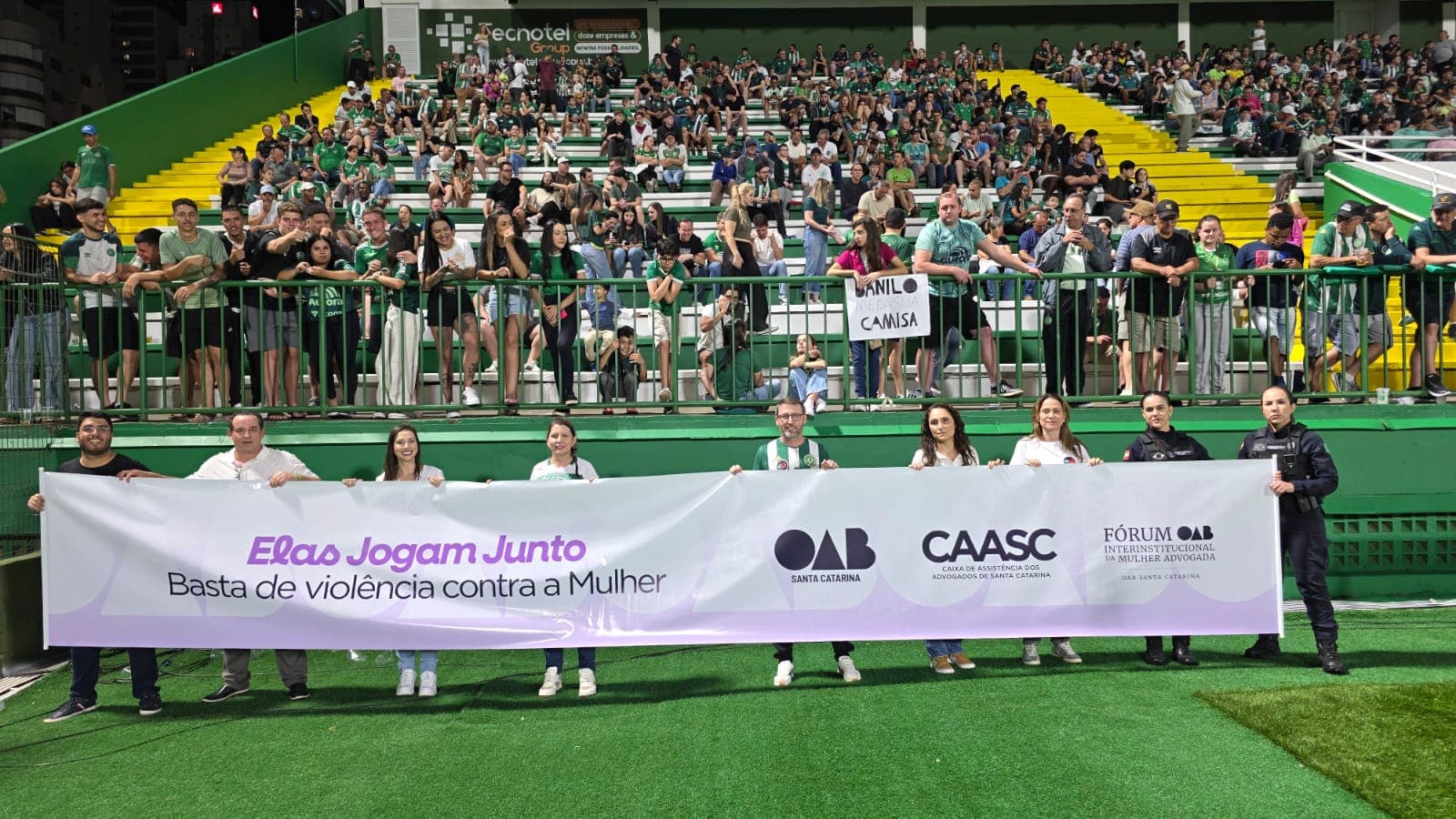 Ação foi apresentada durante partida da Chapecoense e incluiu faixa no gramado, vídeo no telão e distribuição de materiais informativos na Arena Condá