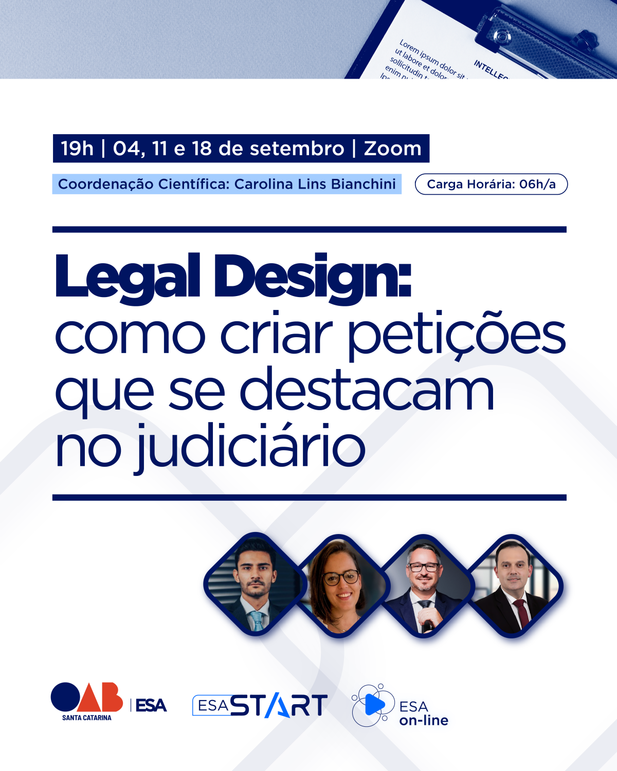 - O certificado estará disponível no site da OAB/SC a partir de 15 dias úteis após o término do curso.