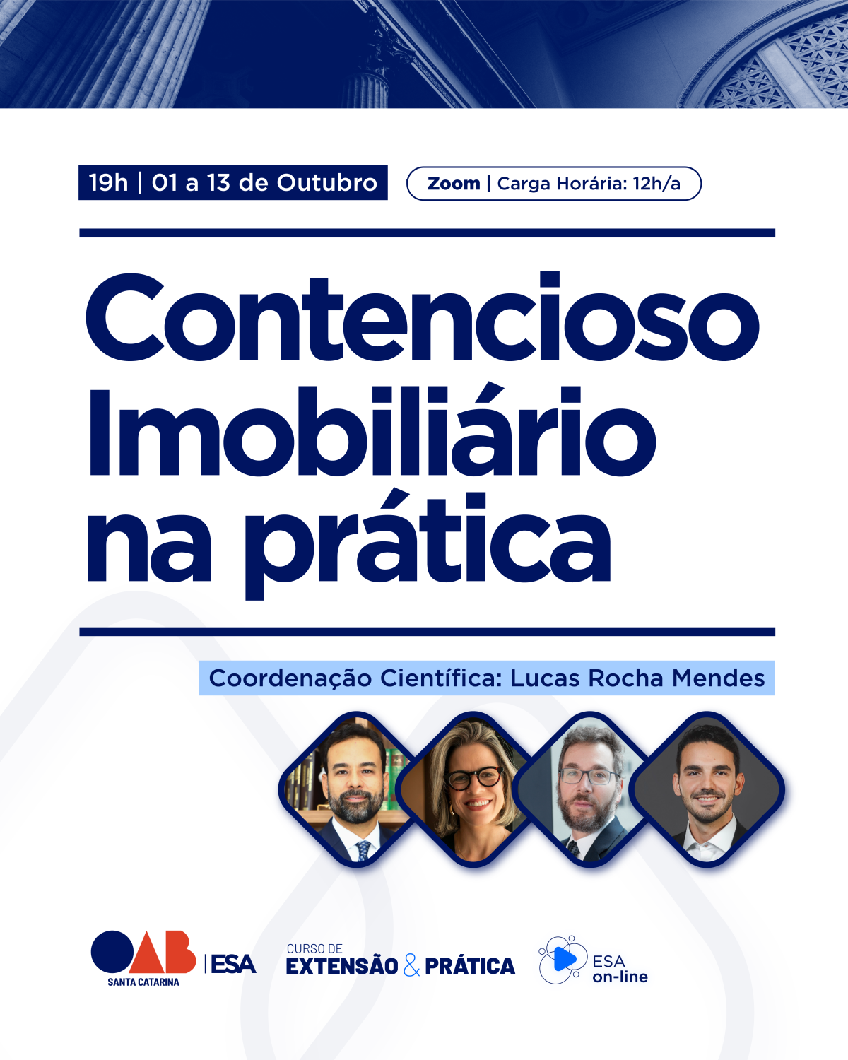- O certificado estará disponível no site da OAB/SC a partir de 15 dias úteis após o término do curso.