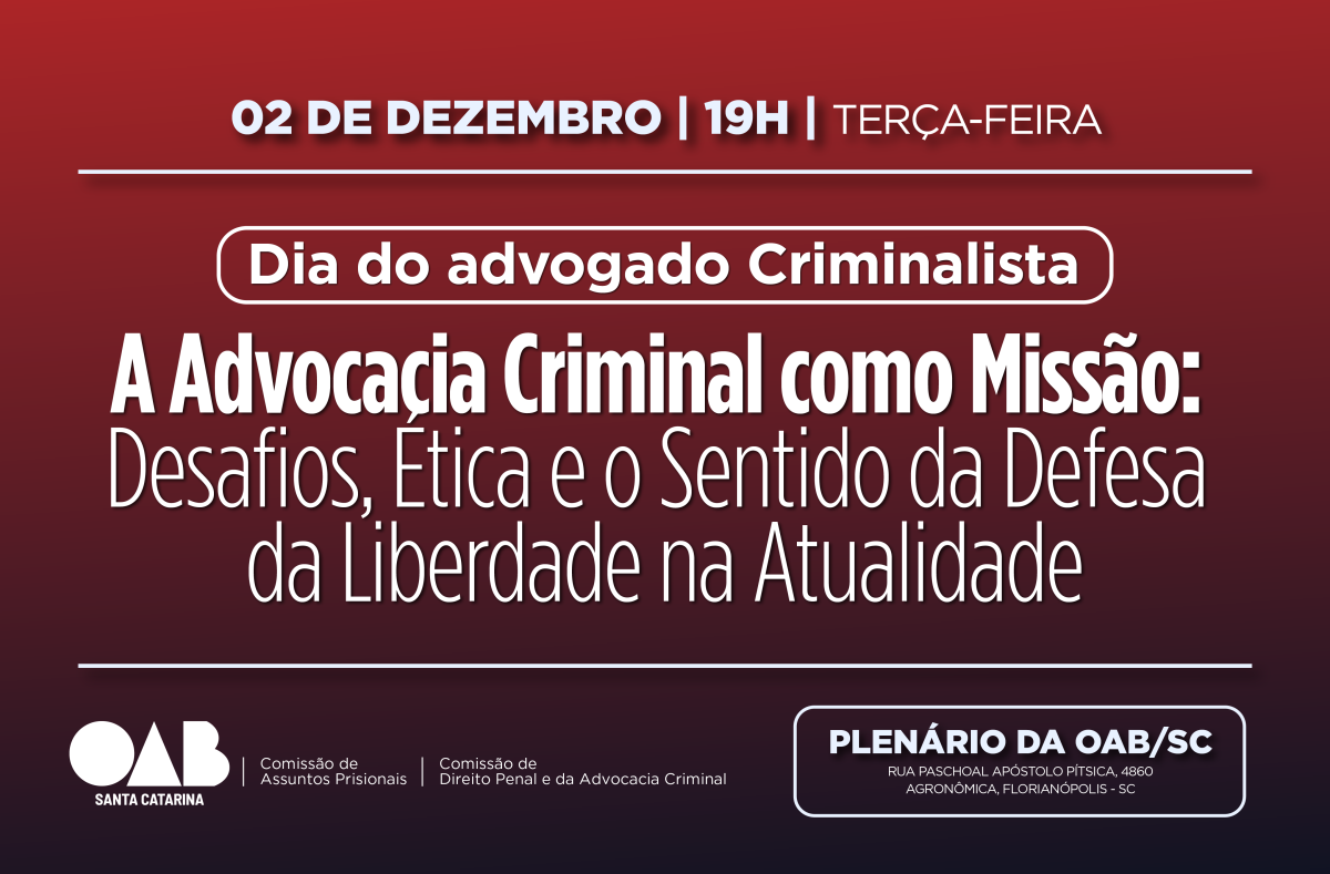 Tema: A ADVOCACIA CRIMINAL COMO MISSÃO - DESAFIOS, ÉTICA E O SENTIDO DA DEFESA DA LIBERDADE NA ATUALIDADE