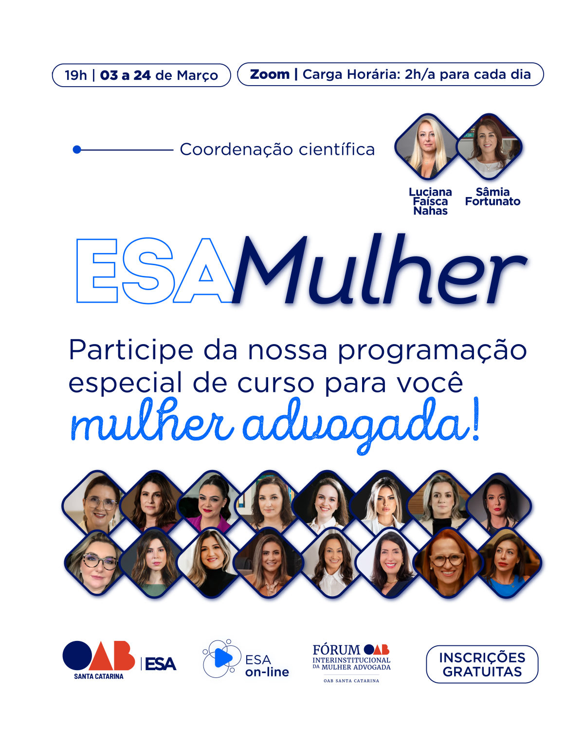 - O certificado estará disponível no site da OAB/SC a partir de 15 dias úteis após o término do curso.