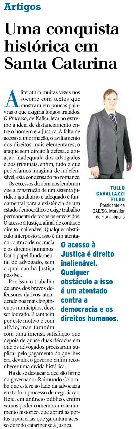 Leia artigo do presidente da OAB/SC, Tullo Cavallazzi Filho, publicado nesta segunda-feira (2) nos jornais de Santa Catarina, sobre o pagamento da dívida do Governo do Estado aos Defensores Dativos.