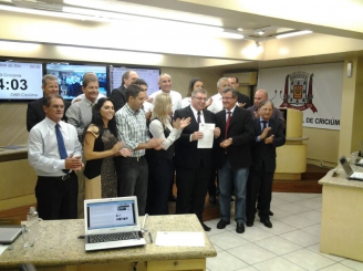 A Câmara de Criciúma aprovou em sessão na segunda-feira, moção de aplauso ao presidente da OAB/SC, Tullo Cavallazzi Filho, em razão do sucesso na negociação com o governo do Estado para quitação da dívida com os defensores dativos. Em Criciúma, 140 advogados foram beneficiados. Na última sexta-feira (28), o Governo do Estado liberou o pagamento da quarta parcela dos honorários da Defensoria Dativa. A moção foi proposta pelo vereador Ricardo Fabris.