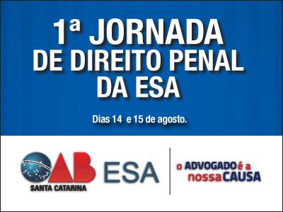 Estão abertas as inscrições para a 1ª Jornada de Direito Penal da ESA, que reunirá nomes de reconhecida relevância estadual e nacional para abordar temas como o projeto de reforma do Código Penal e as novas facetas do Direito Penal e divergências jurisprudenciais. O evento acontece nos próximos dias 14 e 15, das 19h às 22h, no auditório da Seccional em Florianópolis.