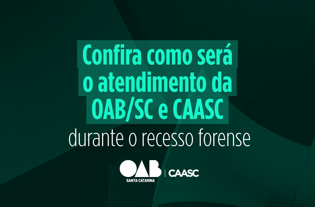 A OAB/SC e a CAASC não param nem no recesso forense. De 22 de dezembro a 02 de janeiro de 2026 o atendimento ao público será realizado das 10h às 17h.