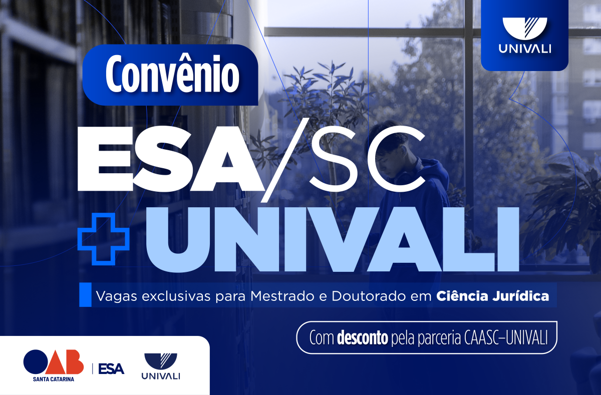O convênio assegura duas vagas para o mestrado e duas vagas para o doutorado em Ciência Jurídica da UNIVALI, destinadas a advogadas, advogados e membros indicados pela OAB/SC, ESA/SC e CAASC. Os candidatos selecionados deverão passar pelo processo seletivo regular da universidade, com todas as etapas e critérios definidos em edital próprio.