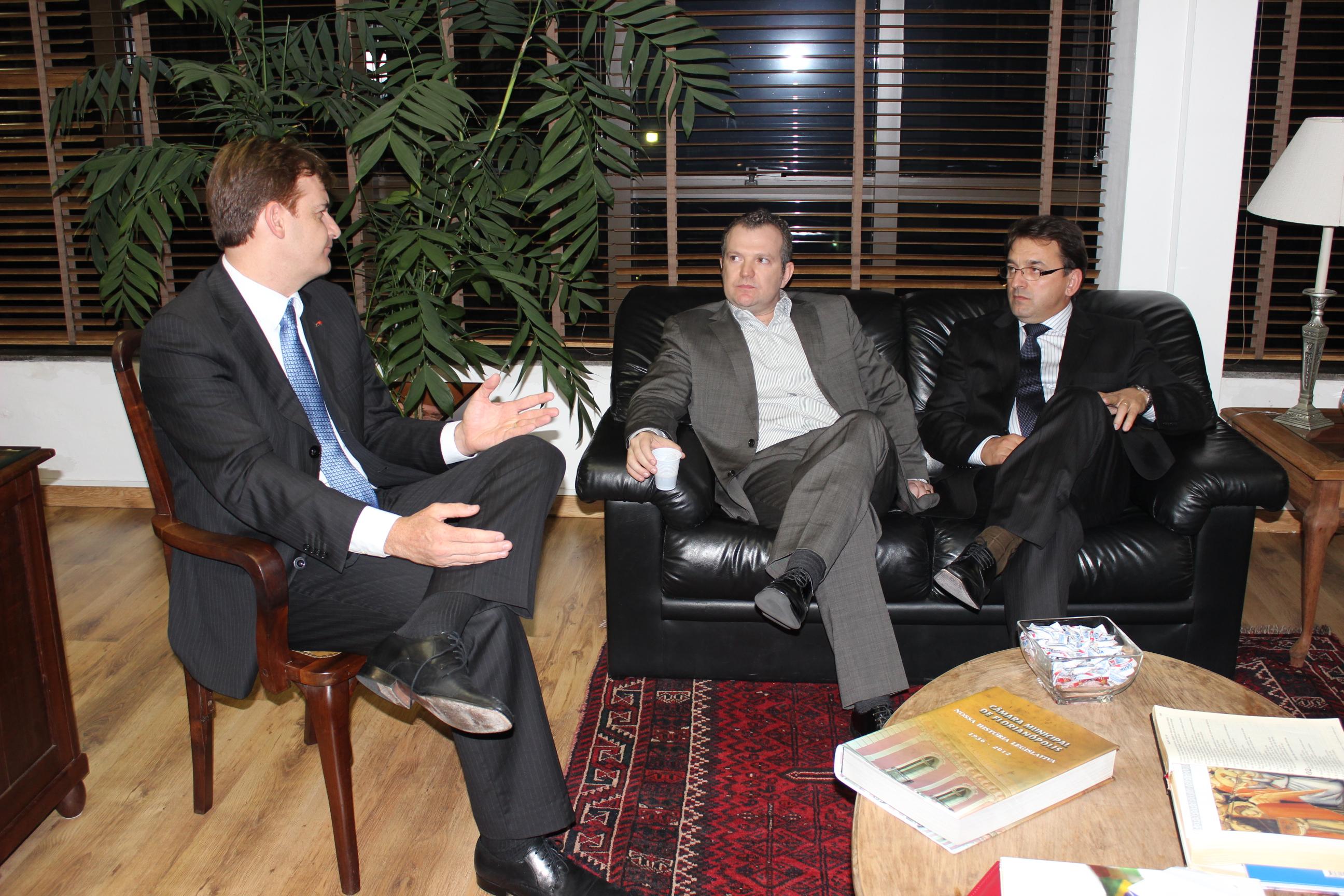 O secretário da Fazenda, Antônio Gavazzoni, esteve na OAB/SC nesta quinta-feira em reunião com o presidente Tullo Cavallazzi Filho e o Dr Anacleto Canan, presidente da subseção de Concórdia e da Comissão de Acesso à Justiça. Os três discutiram alternativas para quitar a dívida de cerca de R$ 125 milhões que o Estado tem com os advogados que prestaram defensoria dativa e avançar nas negociações entre OAB e Defensoria Pública.