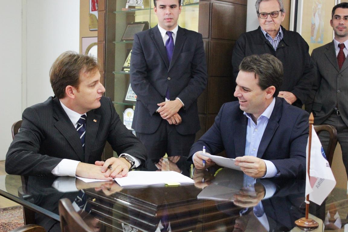 O presidente da OAB/SC, Tullo Cavallazzi Filho, e o prefeito de Florianópolis, Cesar Souza Junior, oficializaram nesta segunda-feira (10) a cessão de uso do estacionamento para advogados em frente ao TJ/SC. Como contrapartida, a OAB/SC participará do projeto Prefeitura Cidadã com a prestação de orientação jurídica à comunidade.