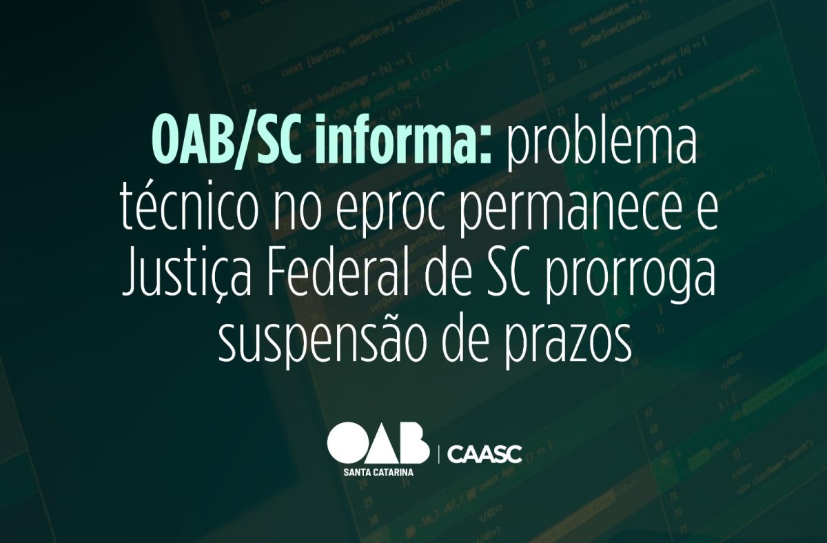 A OAB Santa Catarina informa que a Justiça Federal de Santa Catarina determinou na manhã desta terça-feira (2), a prorrogação da suspensão dos prazos processuais, referente ao dia 2 de dezembro de 2025, que estão em tramitação no âmbito da Seção Judiciária.