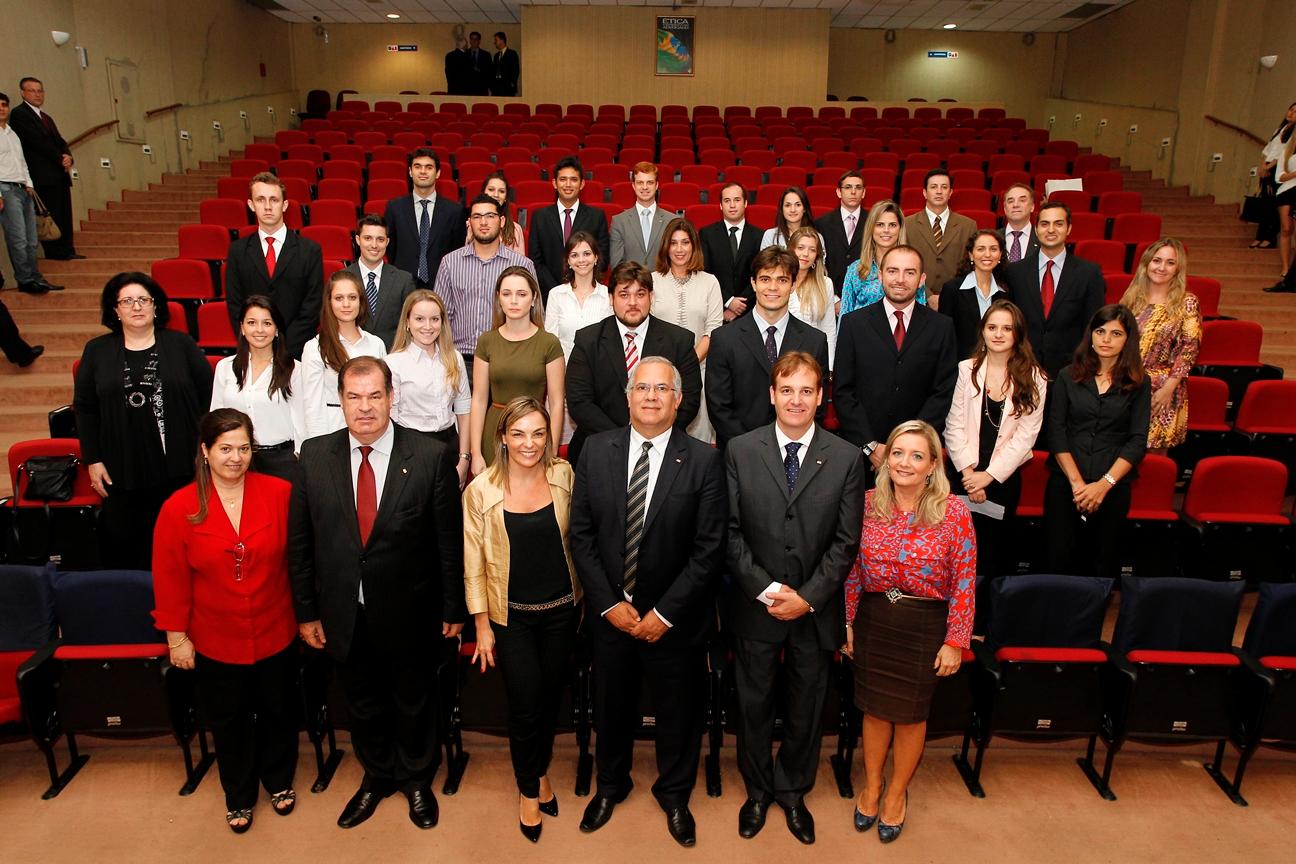 A OAB/SC realizou solenidade na tarde desta quinta-feira (21) para a entrega de 27 credenciais a novos advogados. Foi a terceira entrega deste ano. O presidente da Seccional, Tullo Cavallazzi Filho, presidiu a sessão ao lado da Diretoria e dos Conselheiros Federais Gisela Gondin Ramos e José Geraldo Virmond. Também compuseram a mesa o Presidente do Instituto dos Advogados de Santa Catarina, Ricardo Rosa, e a Presidente da OABPREV, Eni Terezinha Aragão Duarte.
