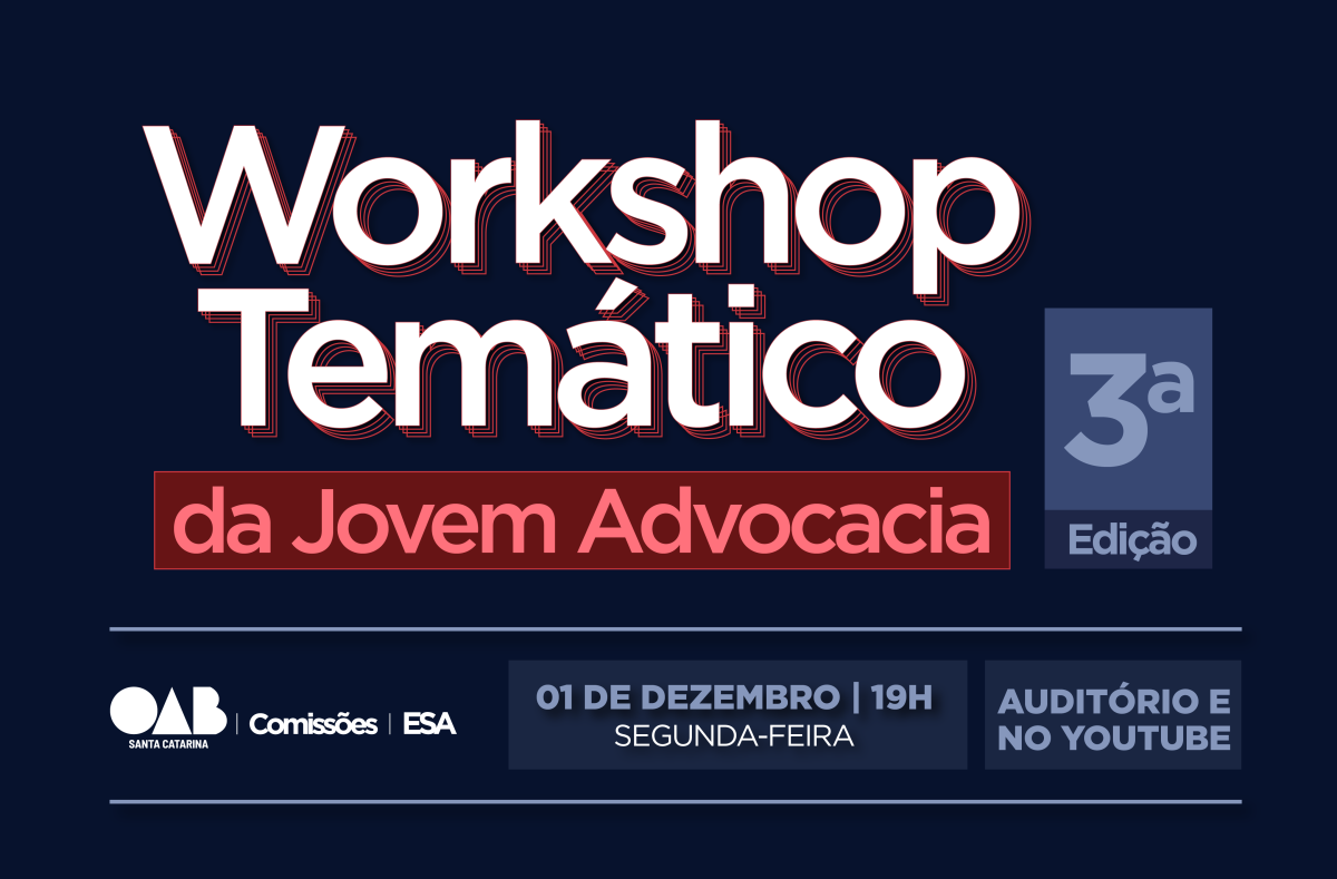 Com o objetivo de fortalecer a participação, o protagonismo e a formação prática da nova geração de profissionais, o Workshop Temático da Jovem Advocacia chega à sua 3ª edição, a ser realizado no dia 1º de dezembro, às 19h, com o tema Recursos nos Tribunais Superiores. O encontro será no Auditório da Seccional, com transmissão ao vivo pelo Zoom. As inscrições podem ser feitas aqui.
